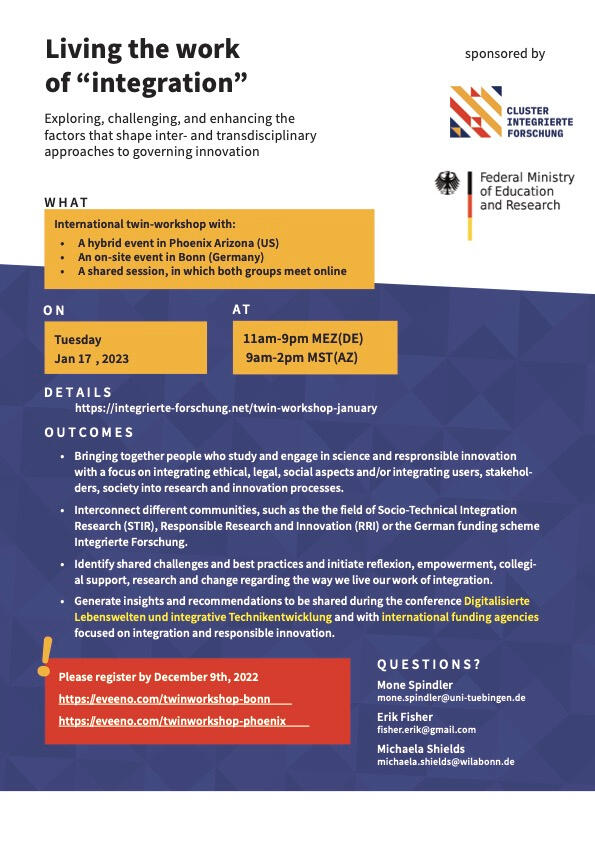 February 2023: (co-authored by Erik Fisher) “Tools Lab: Socio-Technical Integration Research.” Fachtagung Integrierte Forschung, Mannheim, Germany.