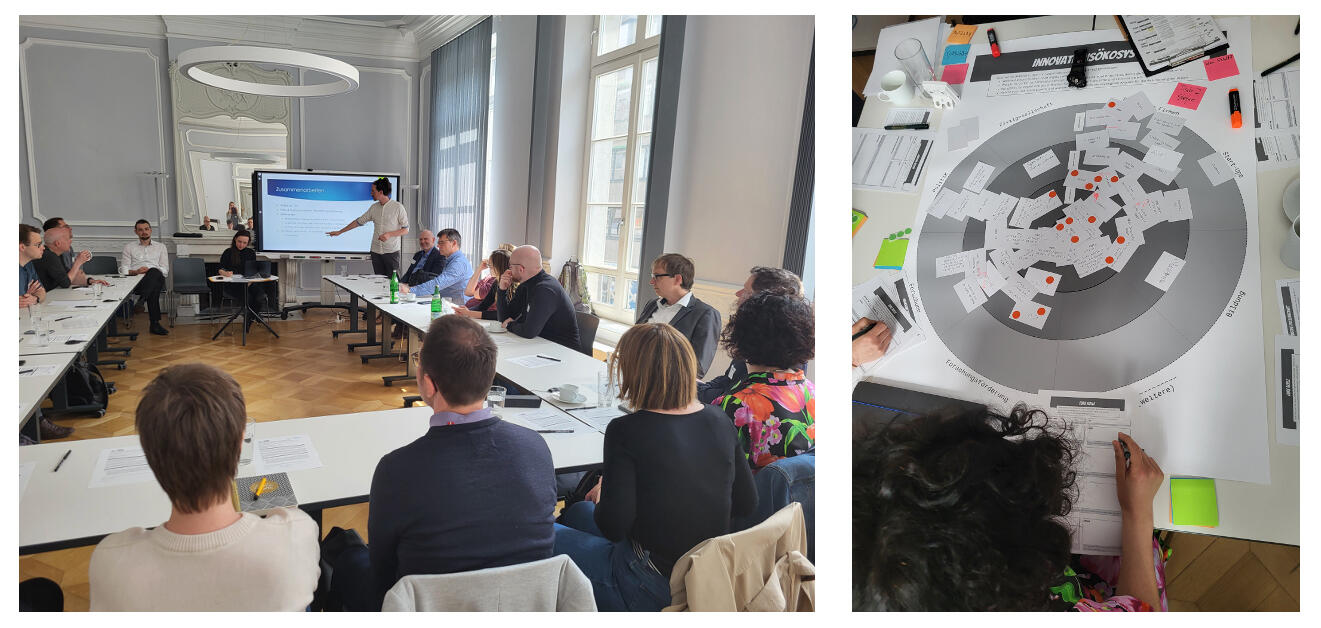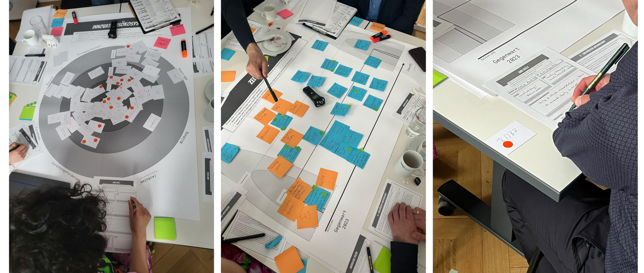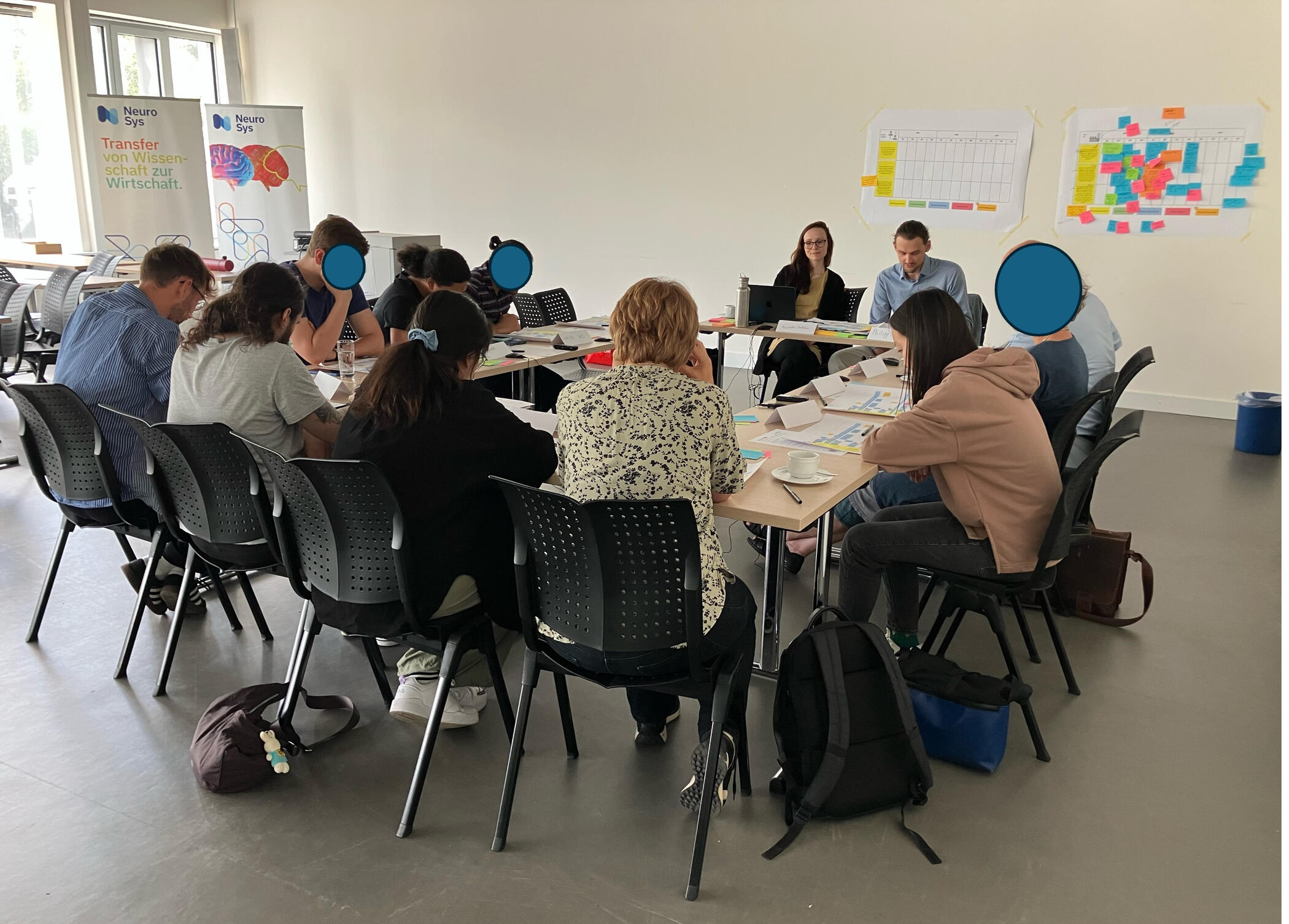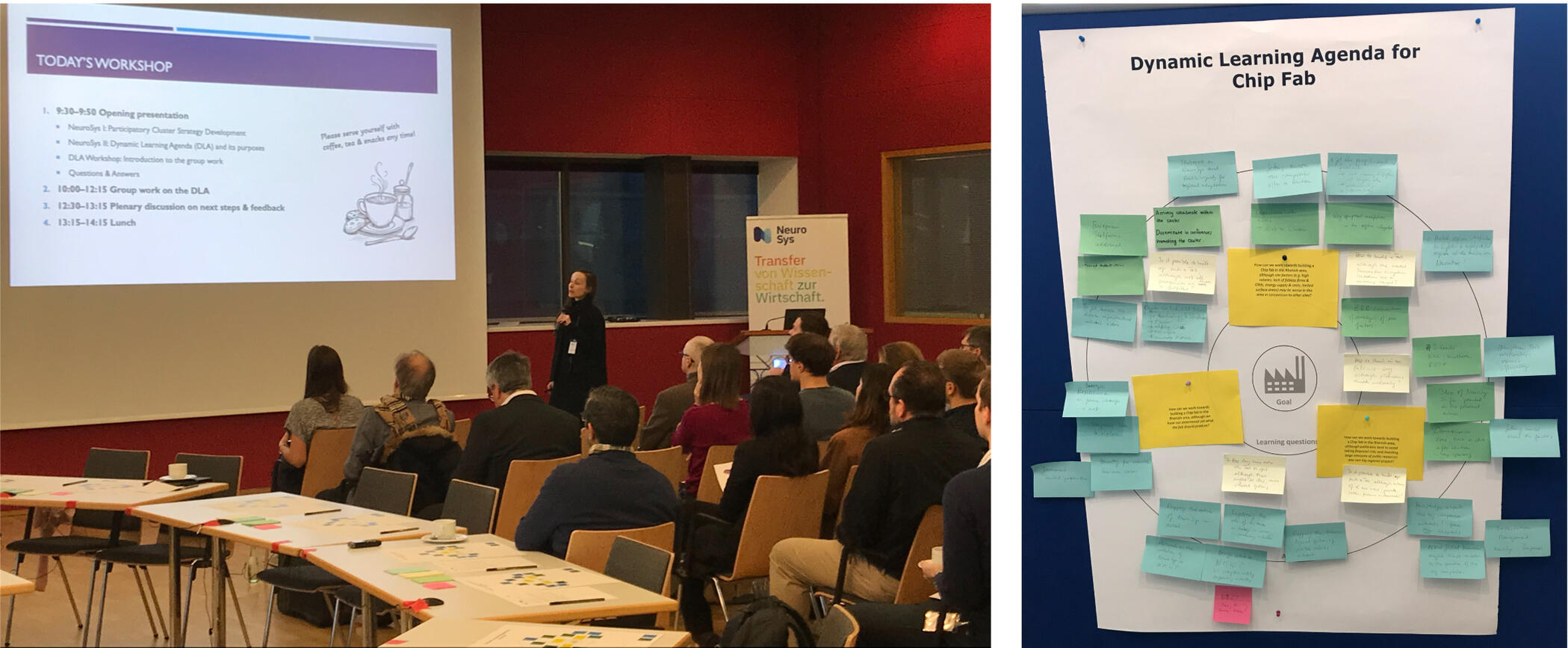 We published our theoretical and methodological framework and preliminary results in the Journal of Responsible Innovation. In a nutshell, we combine Socio-Technical Integration Research with Vision Assessment and Reflexive Monitoring in Action to reflexively engage with scenarios about the future of the innovation ecosystem in a collaborative multi-stakeholder process. So far, we conducted 30 stakeholder interviews to analyse existing visions. The results of our analysis published in Minerva were revised and concretised in a scenario workshop. We then sketched pathways towards desirable scenarios for strategy development. For this purpose, we organised a strategy mapping workshop with all NeuroSys partners. In recuring Dynamic Learning Agenda workshops, we have translated strategies into concrete activities.