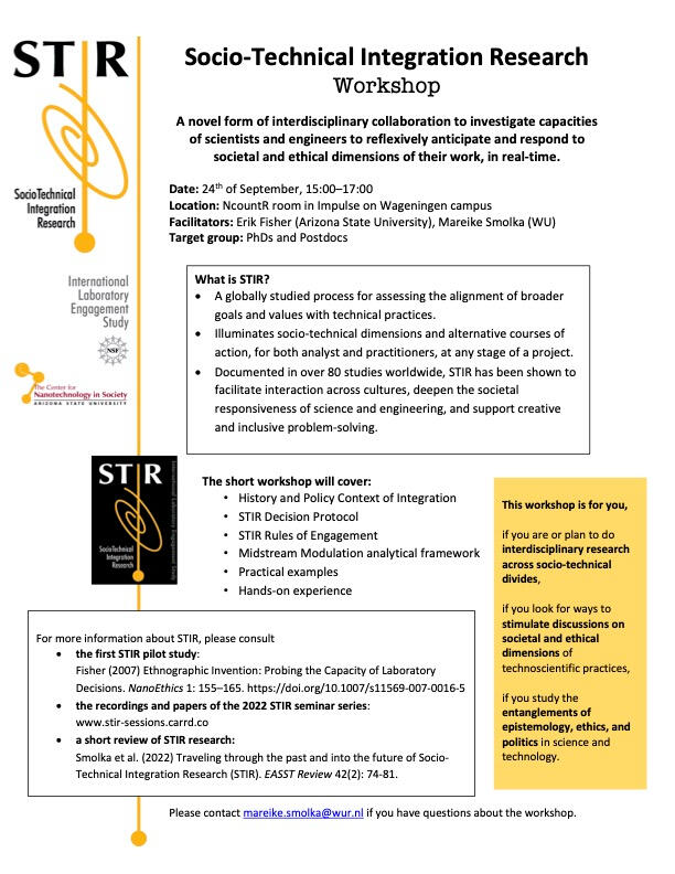 | Sep 2024 | Socio-Technical Integration Research Workshop for PhD and Postdoctoral researchers at Wageningen University & Research |