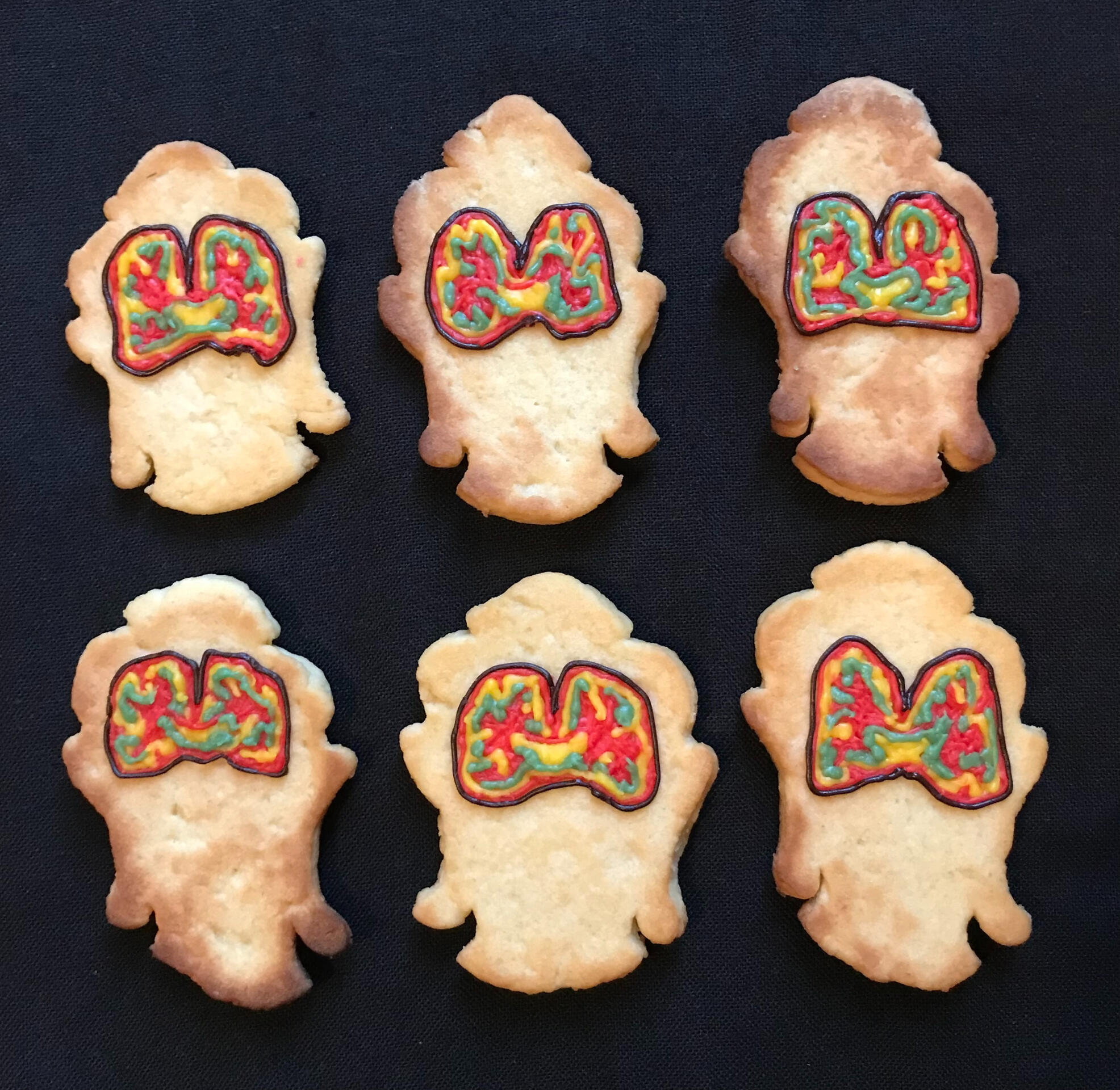 I won the first prize of the 2021 'Bake your research' competition organized by the Maastricht Young Academy. The competition challenged me to express the subject of my research in a cookie or cake. I created edible Buddha-shaped heads with a sugar glaze that resembles brain scans.