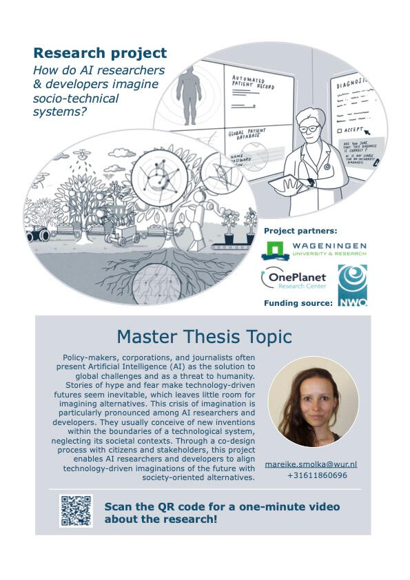 In policy, corporate, and media discourses, Artificial Intelligence (AI) is often envisioned as the solution to global challenges and as a threat to humanity. Dominant hype/fear imaginaries leave little room for picturing alternatives because the future of AI appears fixed and inevitable. This reflects a crisis of imagination: technology-driven futures are easy to conceive, but it is difficult to anticipate plausible ways in which technology and society could interrelate within future socio-technical systems. This crisis is particularly vivid among AI researchers and developers who are used to operating within computational systems and thus tend to neglect societal contexts. As many of them want AI to create better societies, they search for ways to overcome the crisis.This project seeks to study and enhance how AI researchers and developers imagine socio-technical systems. Through a co-design process involving stakeholders and publics, it will explore how dominant and alternative ways of imagining socio-technical systems relate to each other and shape AI research and development. The concept of system imagination will be coined to analyze the process. This concept will scrutinize the potential within practices of individuals and small groups to connect seemingly conflicting ways to imagine socio-technical systems. The goal is to find out how the crisis of imagination can be addressed effectively so as to help AI researchers and developers better align technology-driven futures with society-oriented alternatives.The empirical site is OnePlanet Research Center, a high-tech research and innovation center connected to Wageningen University & Research. The center marries an industrial focus on microelectronics with a commitment to developing AI for healthy, sustainable societies. It is an excellent site for interrogating the intersection between technology-driven imaginaries and society-oriented ways to imagine the future. The project will be conducted in collaboration with two AI teams at OnePlanet: one working on AI for precision pruning of fruit trees with smart robots and the other on AI predicting hydration levels for preventive health. The project aims at lasting impacts on local research and innovation, while disseminating theoretical and methodological resources for creating similar impacts elsewhere.