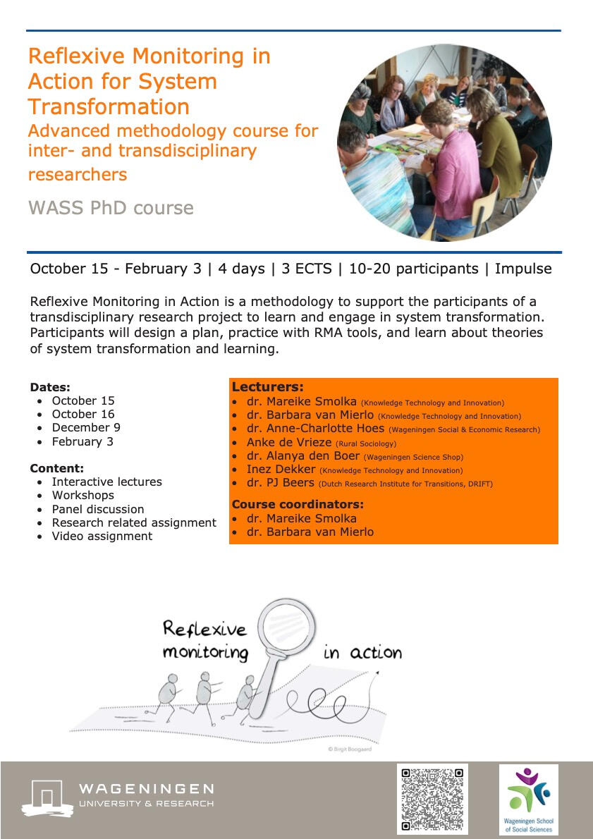 | Jan – Mar 2024 | Reflexive Monitoring in Action on reflexive learning in transition processes at Drift Transition Academy Utrecht |