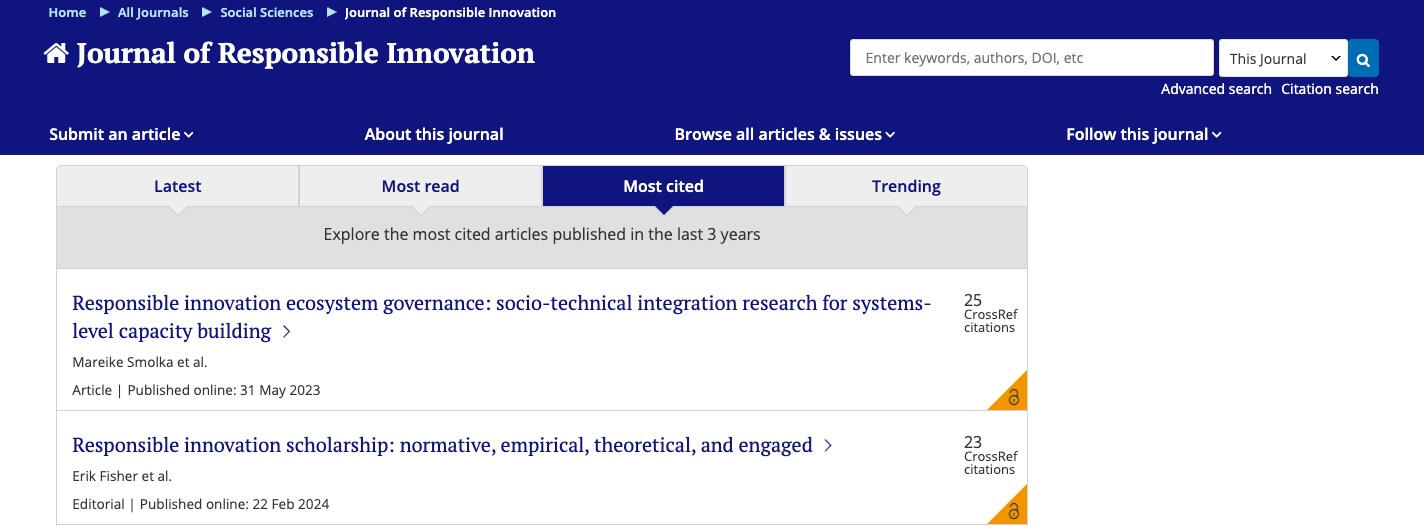 I published two articles which were among the most cited in the Journal of Responsible Innovation from June to November 2025.