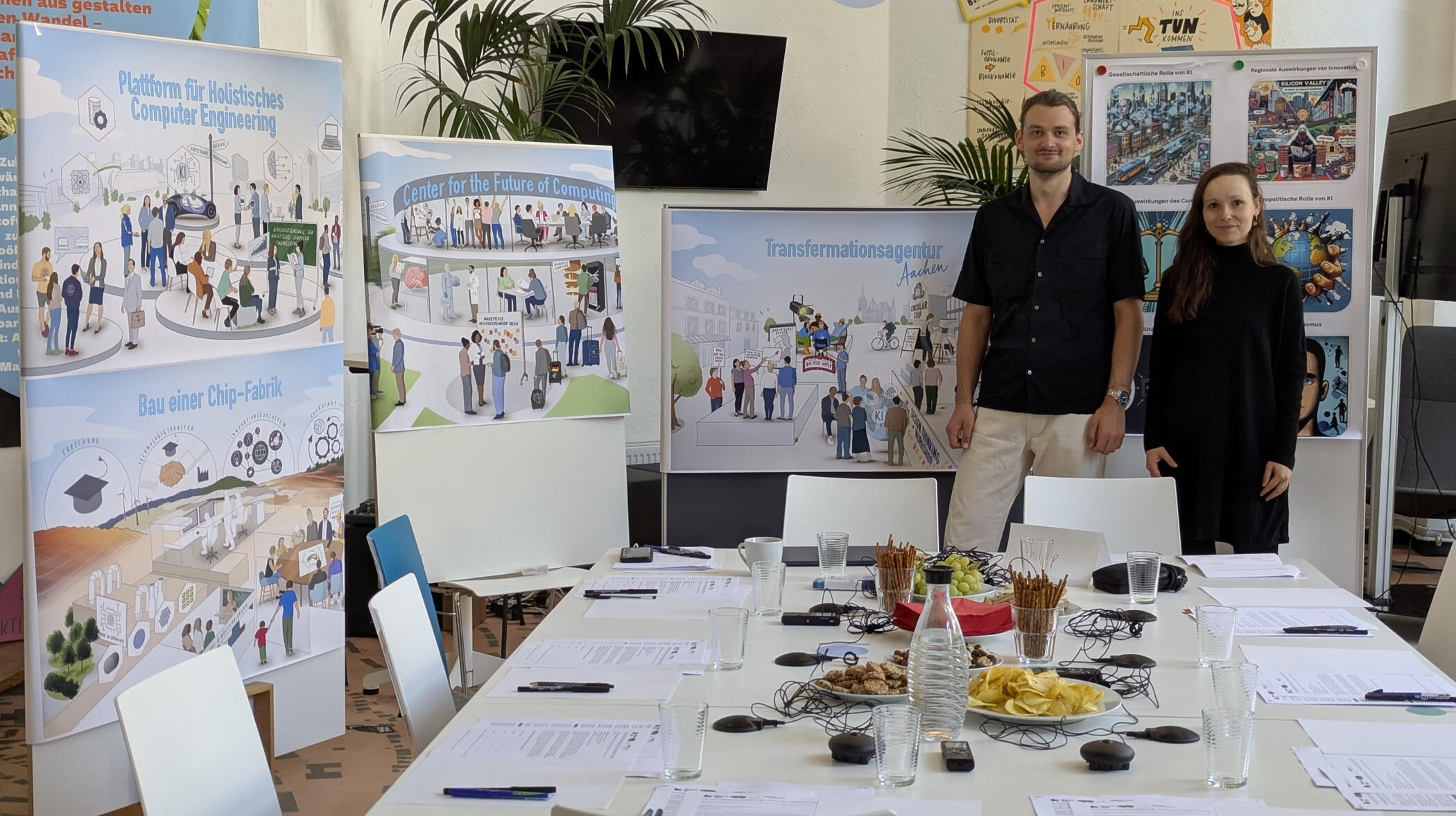 Focus group setup at OecherLab Aachen with visualizations created by Friederike Dietz.